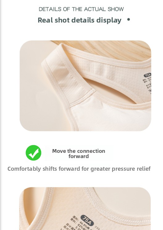 Features: No underwire, no hook closure, breathable, sweat-absorbent, and adjustment-friendly.